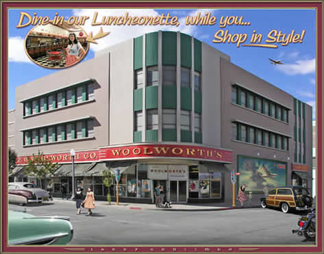 Was there ever a more iconic "five & dime" type store than Woolworth's ...I don't think so! Not only was the lunch counter food pretty good (and cheap), they had a huge quantity of colorful parakeets (budgies) for sale as well! -- L.G. |
