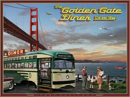 What a sensational view to chow-down by, practically right beneath San Francisco's glorious Golden Gate Bridge! The location for this classic streetcar-themed diner is unbeatable ...too bad it's only a figment of my imagination! -- L.G. |
